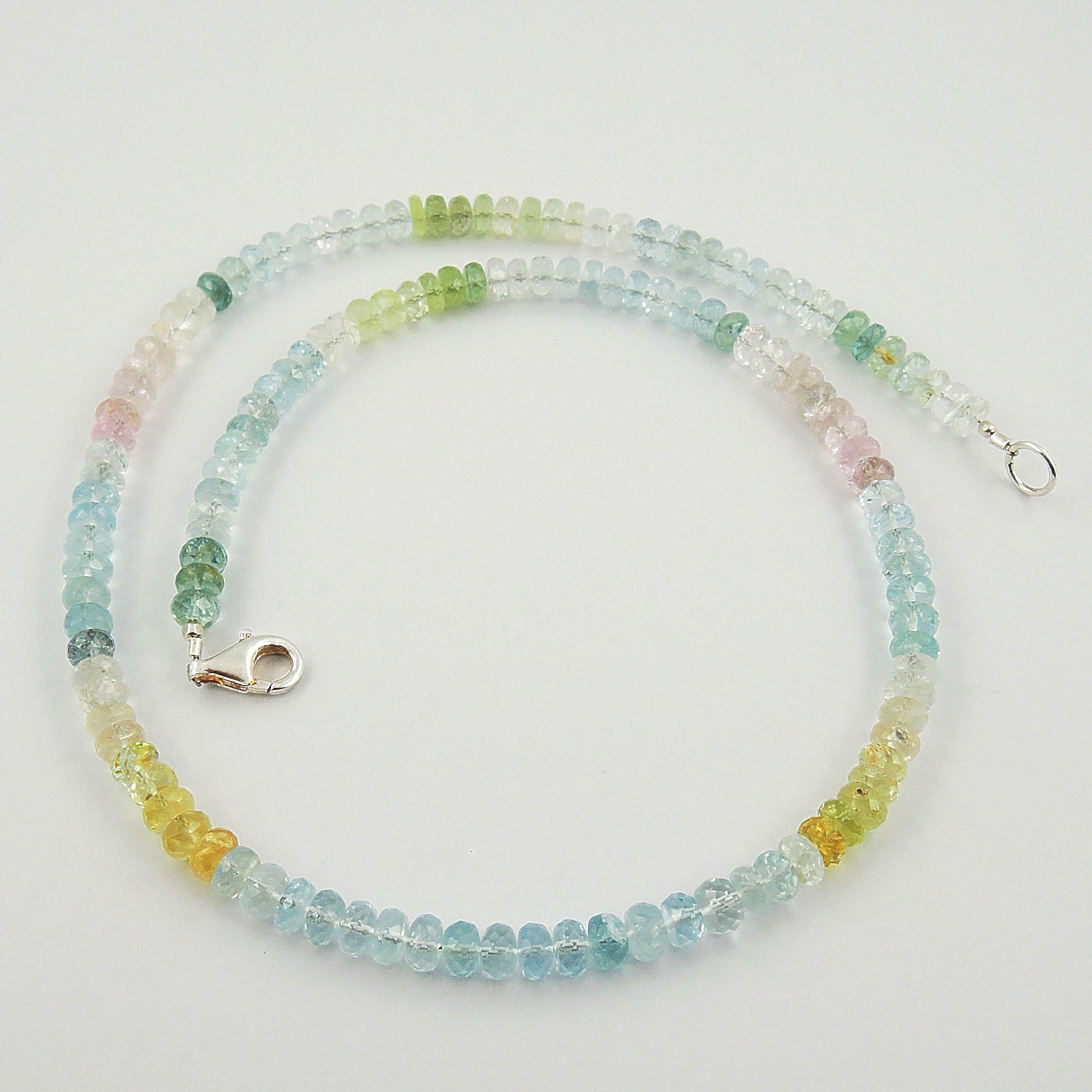 Kette mit facettierten Aquamarin/Morganit/Heliodor Walzen ca. 6mm.