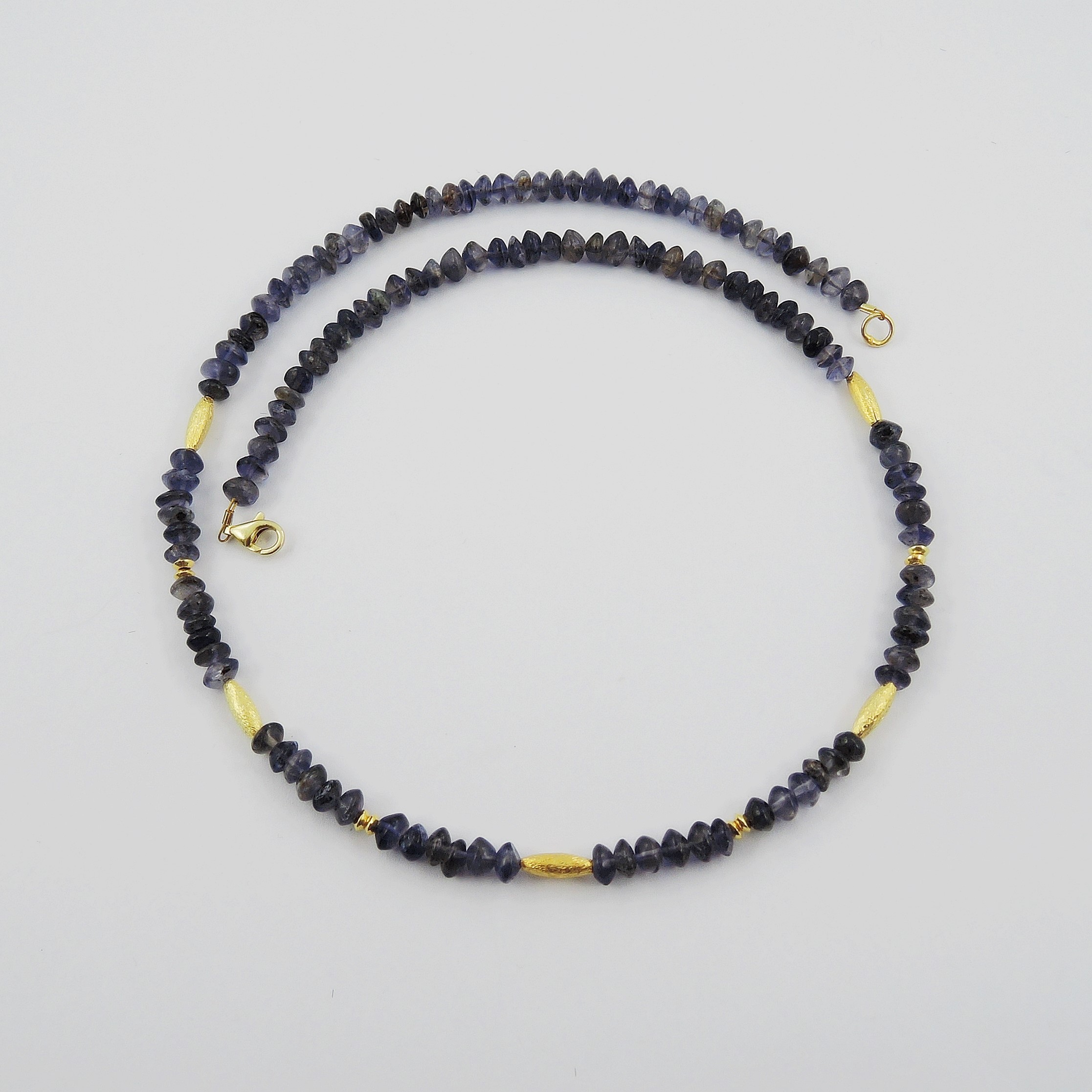 Cordierit-Kette ca.5mm mit silberveroldeten Zwischenteilen.