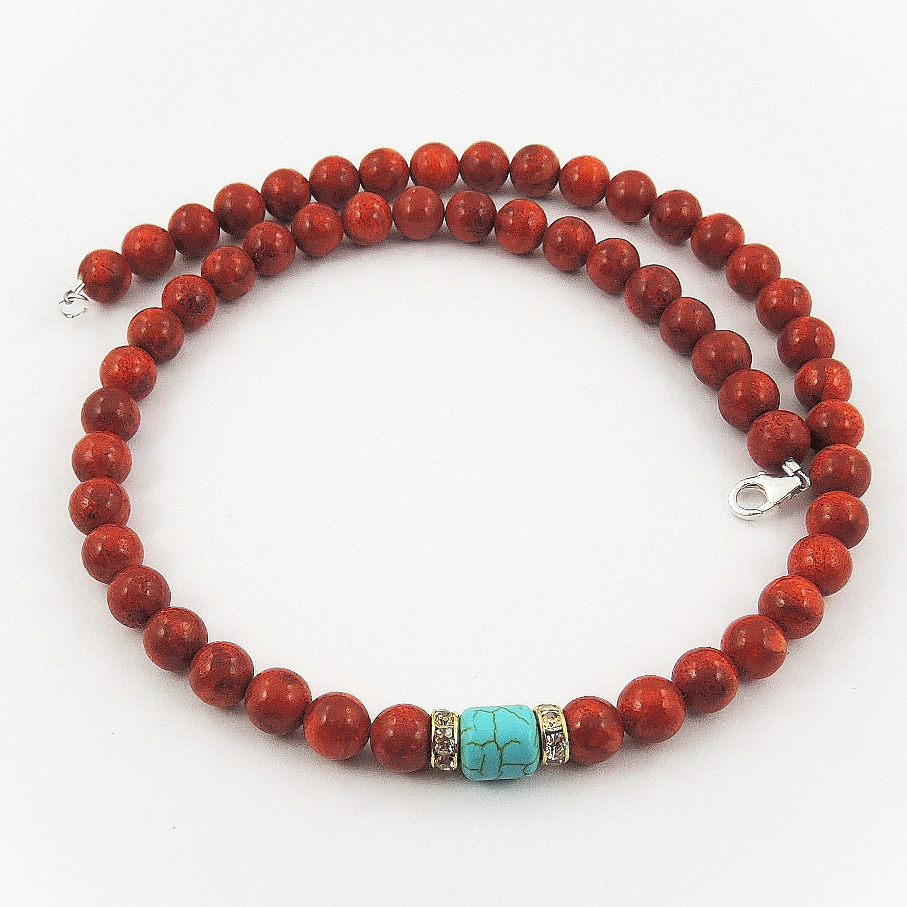 Schaumkorallenkette mit einem Howlith Stein und Strass Rondellen.