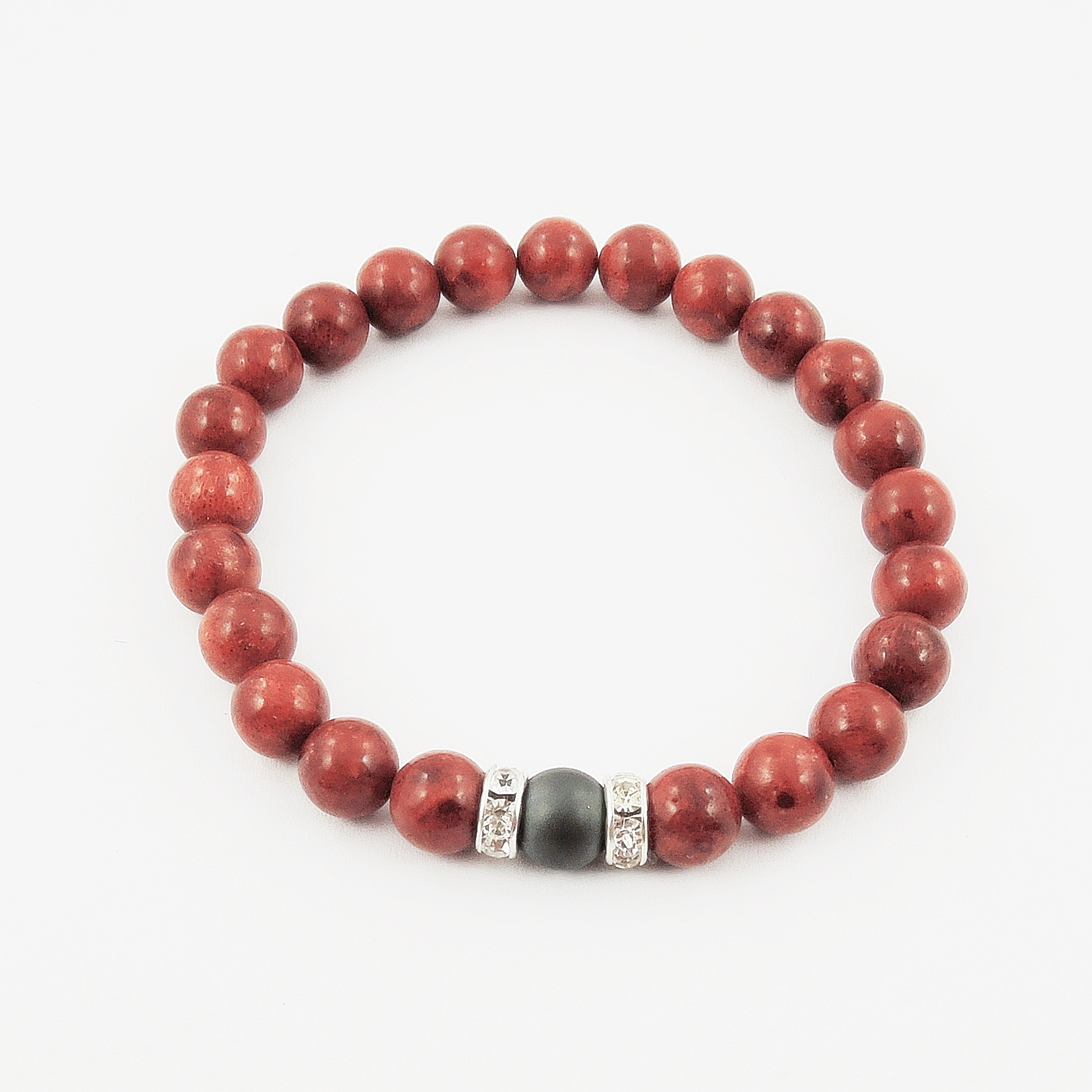 Schaumkorallenkette mit einer Jade Kugel und Strass Rondellen.