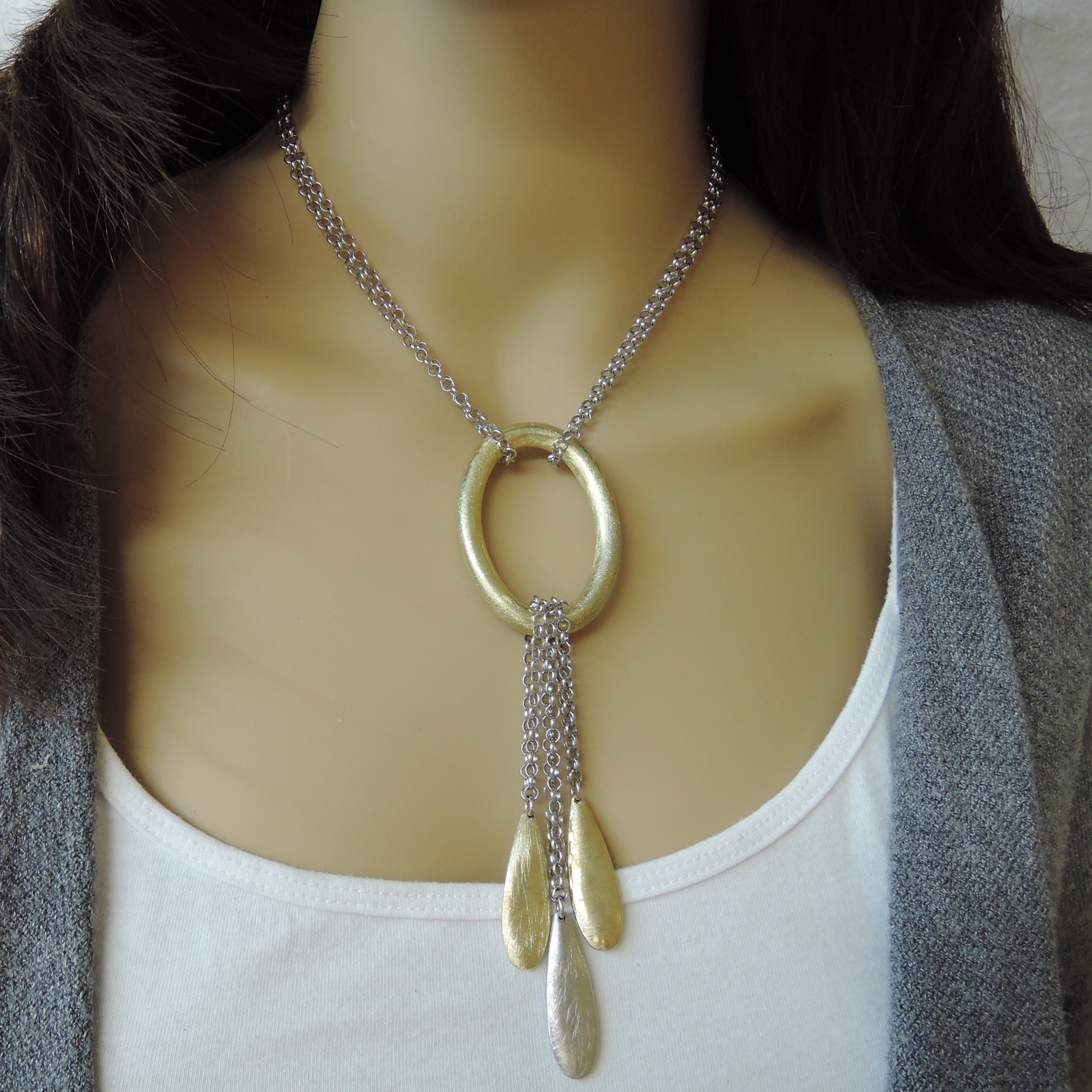 Collierkette aus 925er Silber und mit vergoldeten Silberteilen, Kettenlänge ca. 42 cm, Mittelteil ca. 13,5 cm,