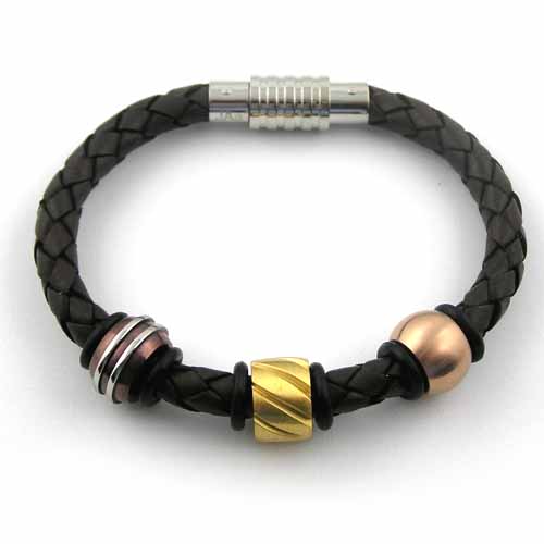 Lederarmband,geflochten braun, mit Stahl Magnet/Schraubverschluß. Länge ca.19cm.